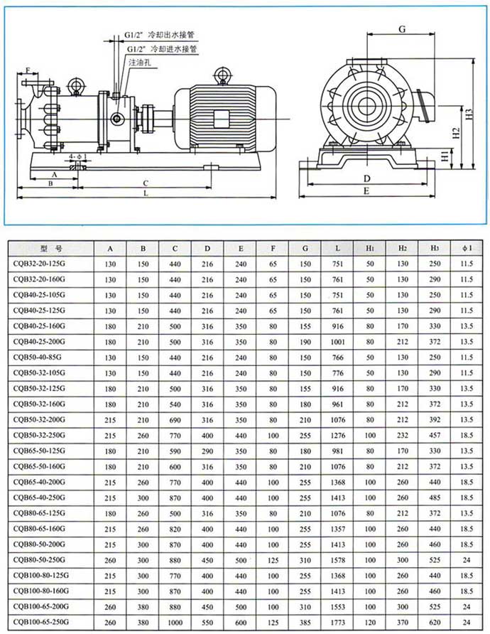 CQB-G 80-65-125 | 30 50 60 | 22.5 20 18 | 4.0 4.0 4.5 | 2900 | 4.48 5.24 5.55 | 41 52 53 | Y 132S1-2 YB 5.5