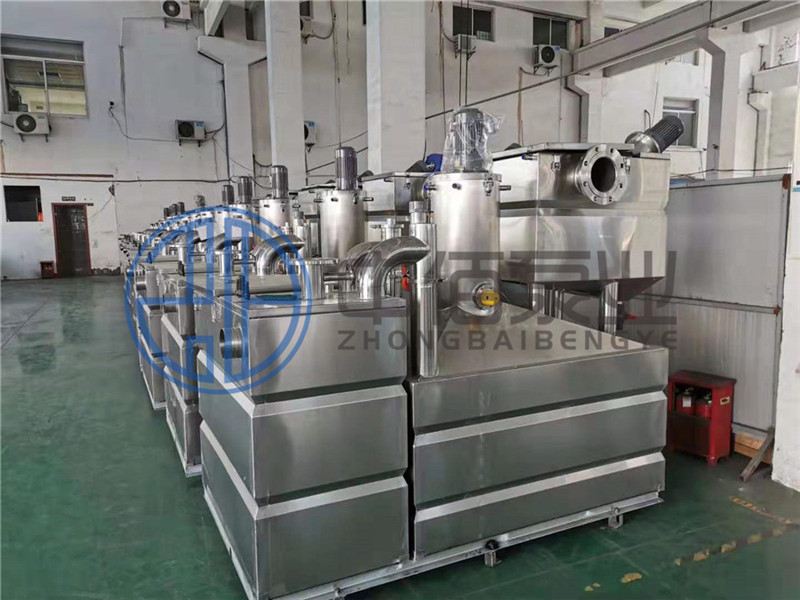 產品各部件可拆卸維護;獨特的軸承式螺旋絞龍除渣裝置,低噪音、更穩定、運行時間更長;單導向自伸縮油水分離裝置,穩定運行的同時,可自動調節鏈條長度,處理效果更好,故障率更低;全自動反沖洗清潔裝置,定期對設備內壁進行清洗,防止雜物、油漬粘附。設備配有輔助水箱(選配),為設備間無輔坑的客戶提供的集水箱,方便設備清洗時需要放空設備內部的污水,使設備間更干凈整潔。